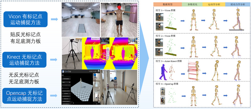 人体运动的运动捕捉技术、骨肌多体动力学仿真。