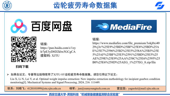 发布齿轮疲劳寿命实验数据集: 百度网盘链接:https://pan.baidu.com/s/1zyIr7pE3yD8D2kbx5GCgCA 提取码: XJTU